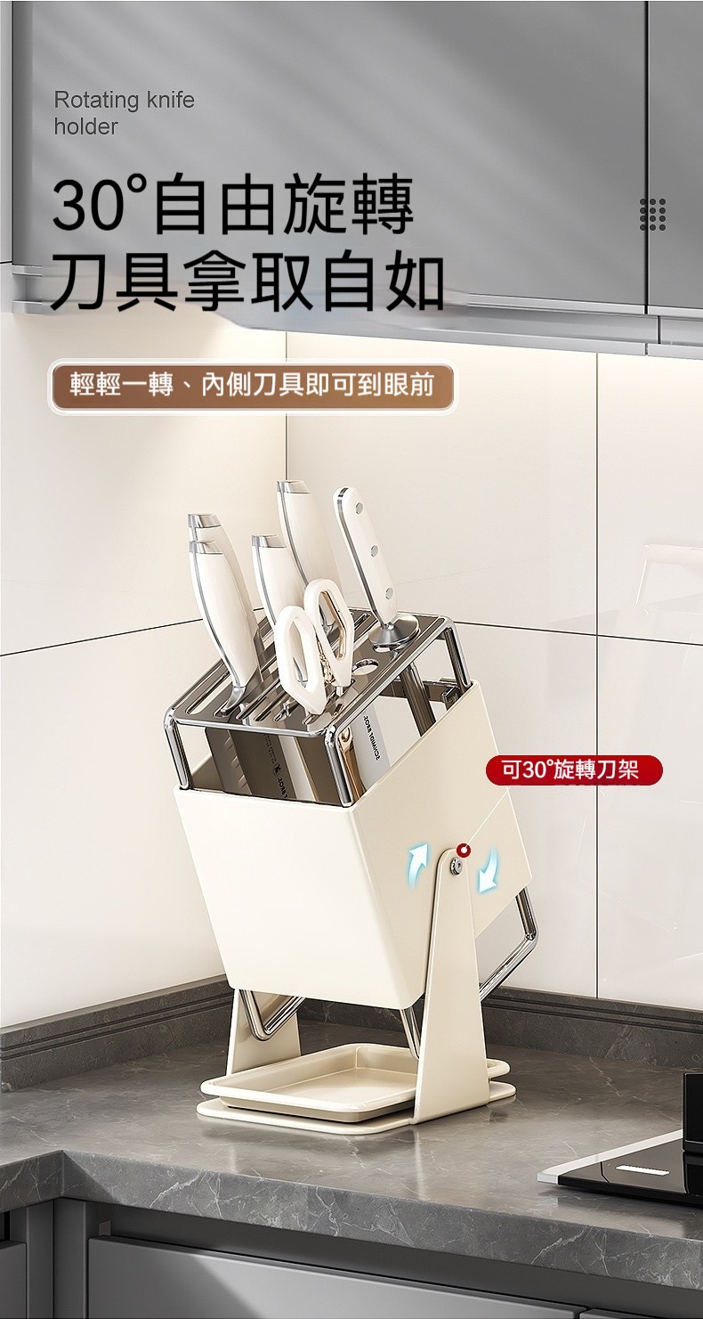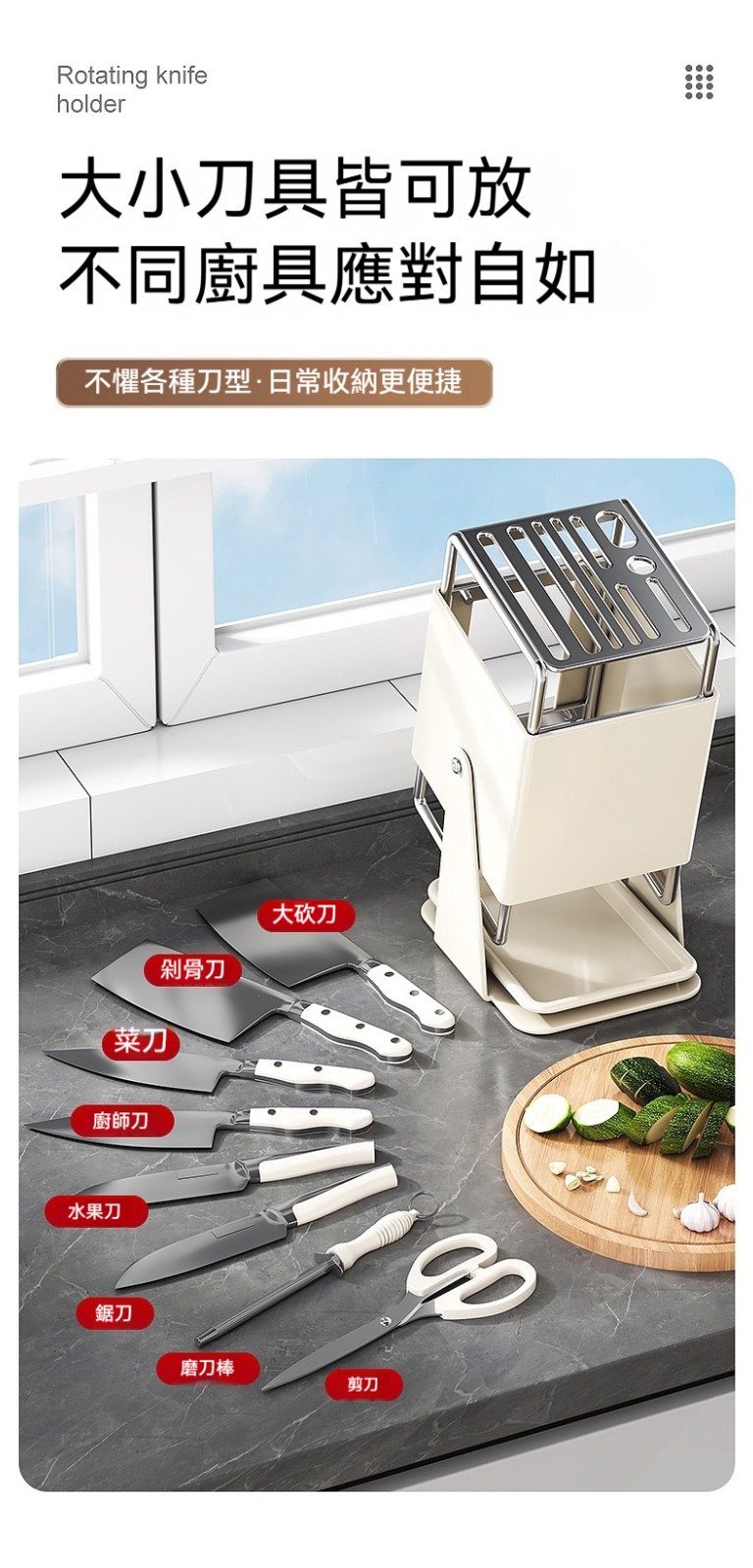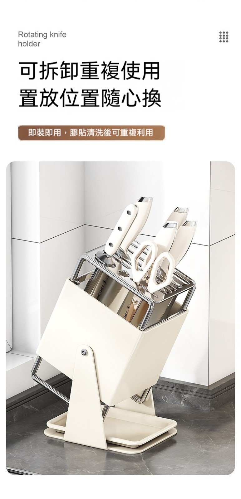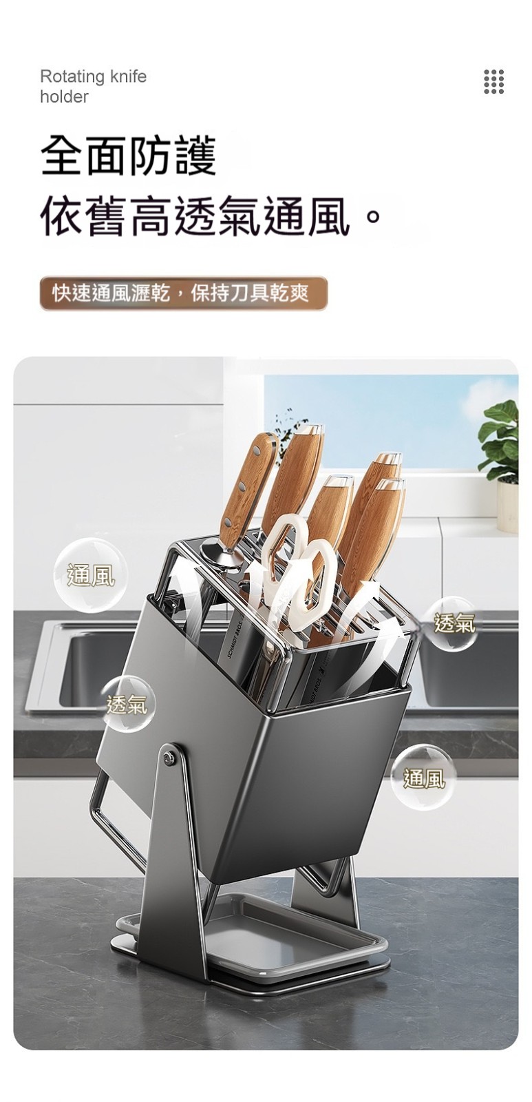 【日式廚房旋轉刀架】透氣瀝水、安全防割完美整合!不鏽鋼一體成型、磁吸分區收納、可移膠貼底座,重新定義刀具收納的安全美學✨