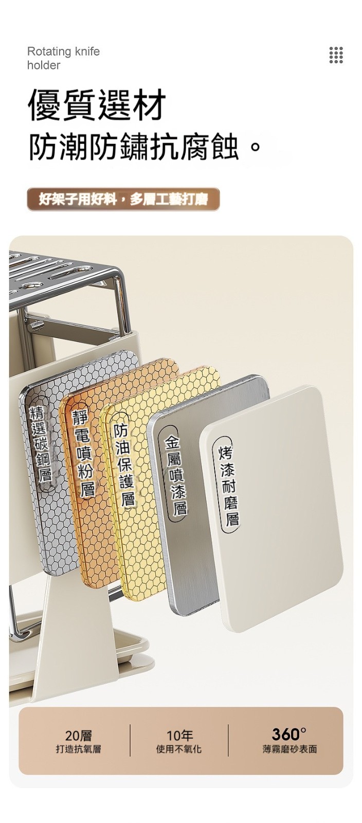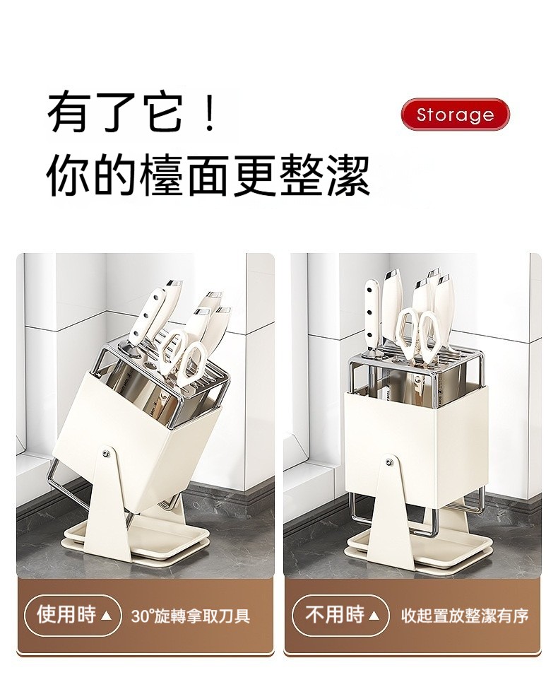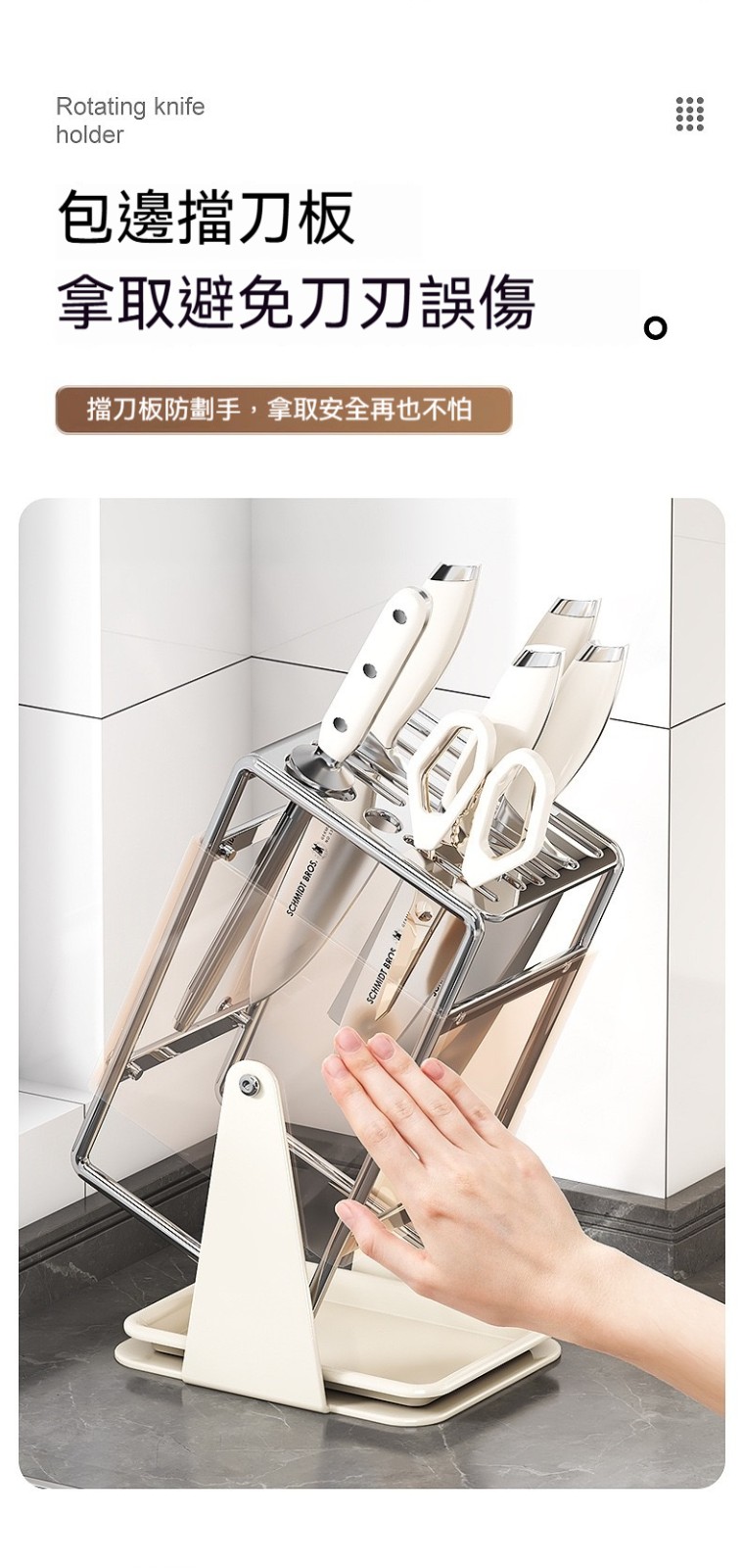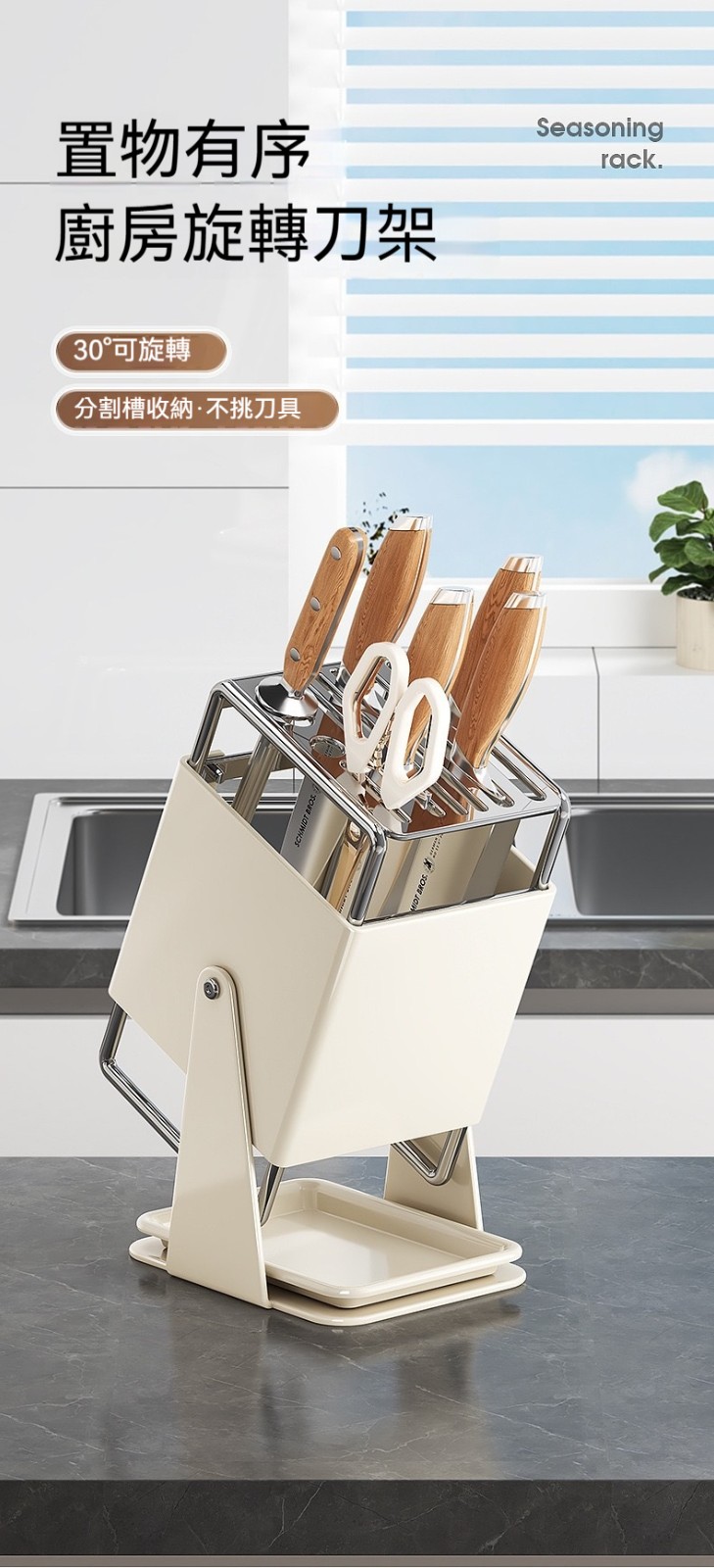 【日式廚房旋轉刀架】透氣瀝水、安全防割完美整合!不鏽鋼一體成型、磁吸分區收納、可移膠貼底座,重新定義刀具收納的安全美學✨