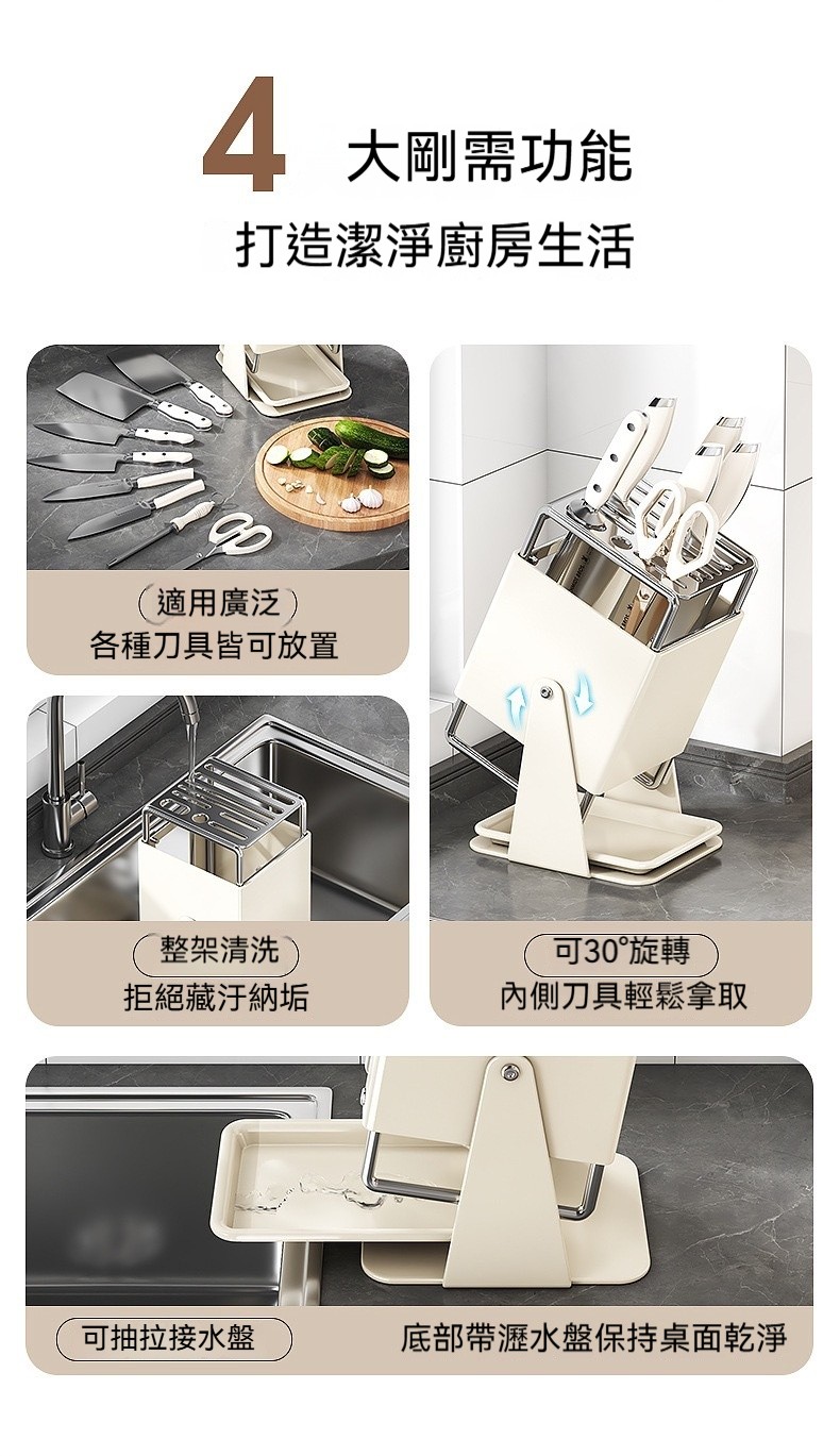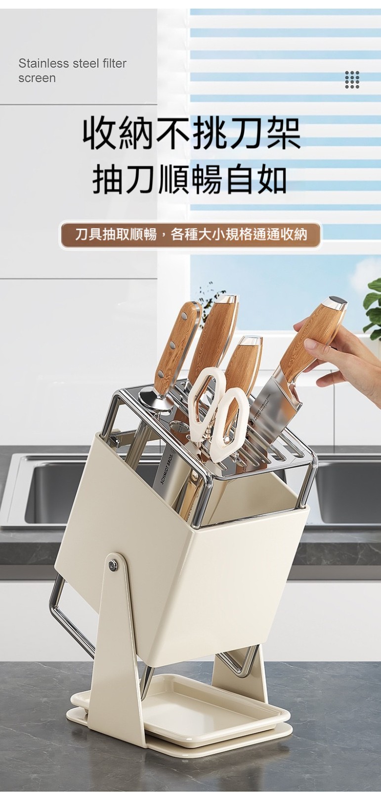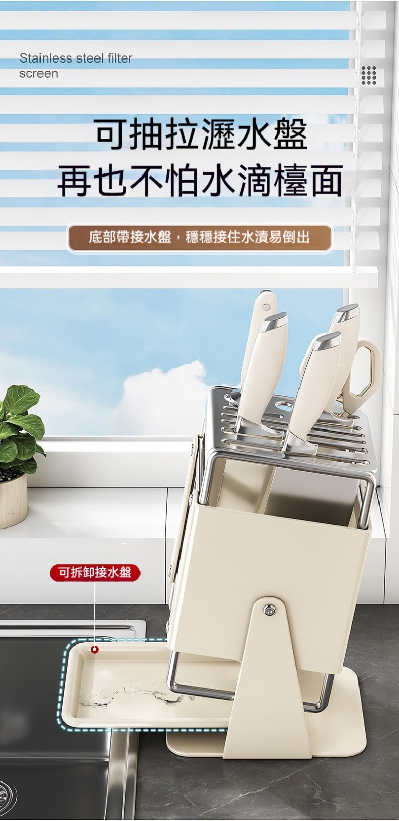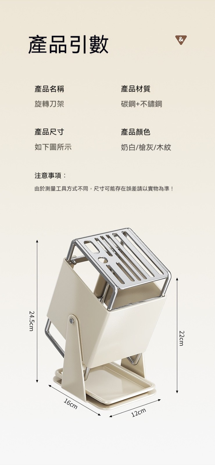 【日式廚房旋轉刀架】透氣瀝水、安全防割完美整合!不鏽鋼一體成型、磁吸分區收納、可移膠貼底座,重新定義刀具收納的安全美學✨