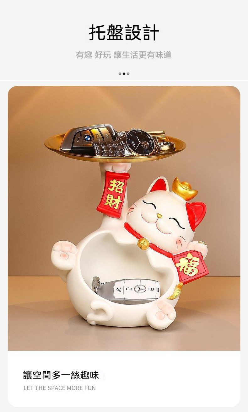 「托盤招財貓收納擺件」 來了! 可拆式托盤、招手動態、精緻釉彩, 讓招財貓不僅為你招來財氣,更替你守護出門的秩序與安心!✨