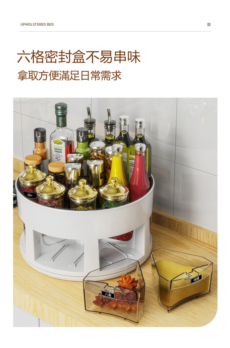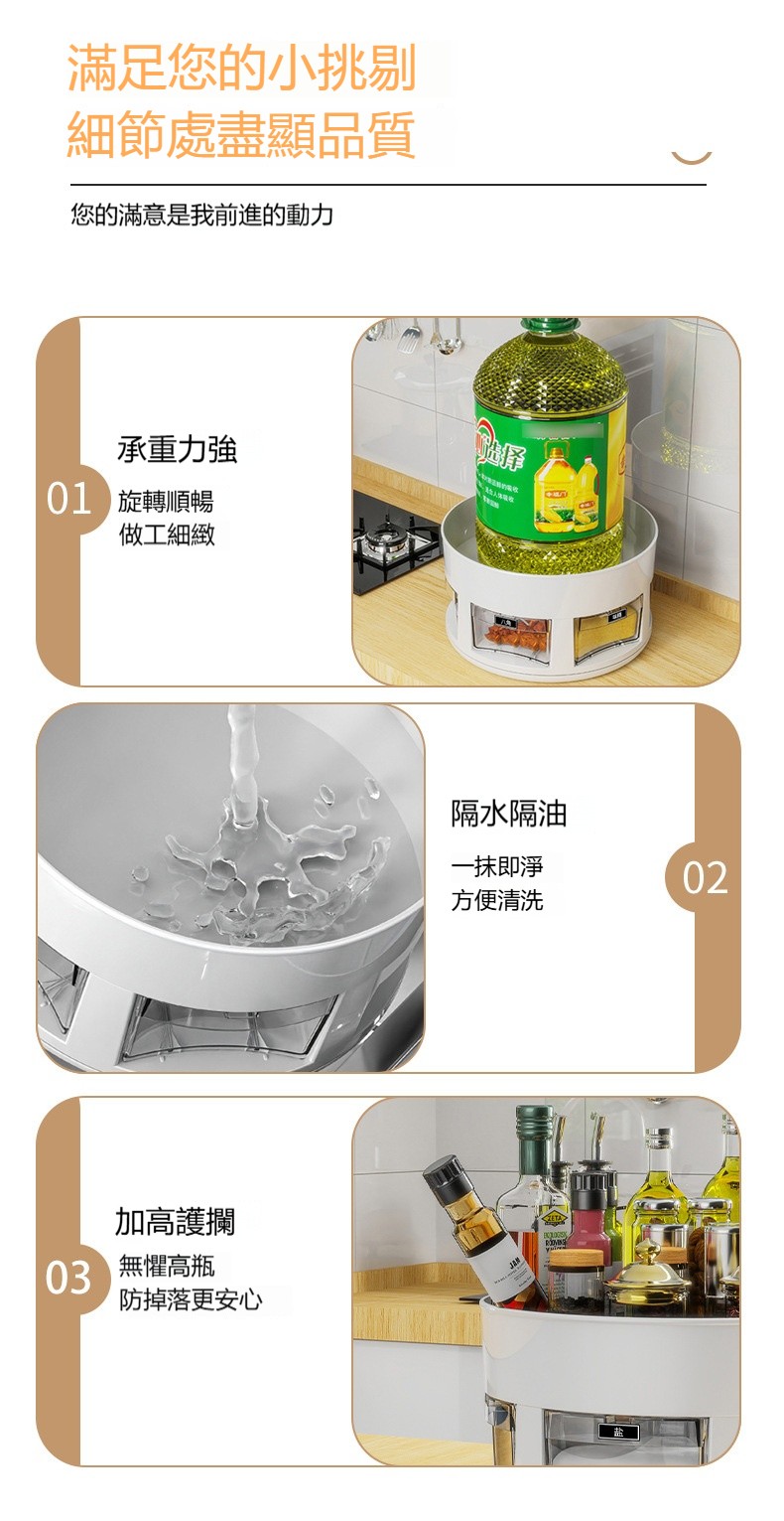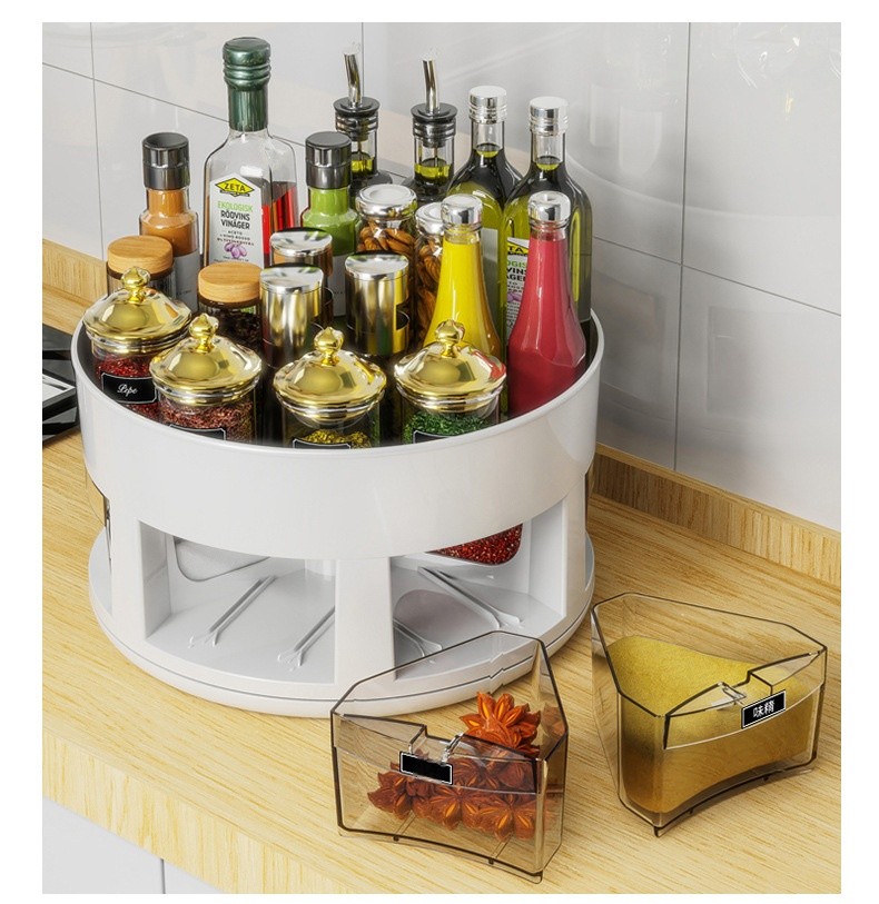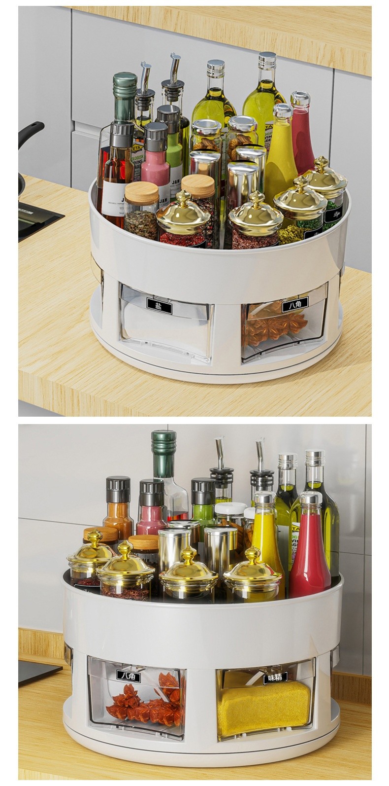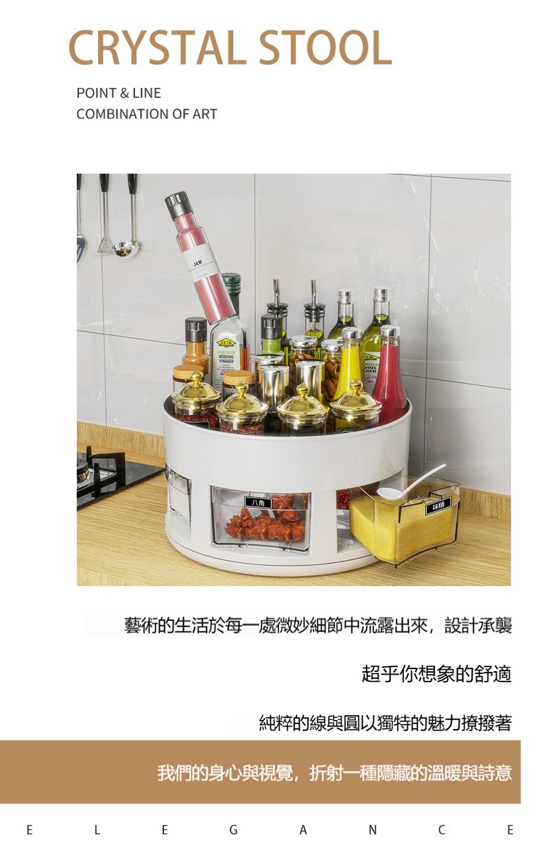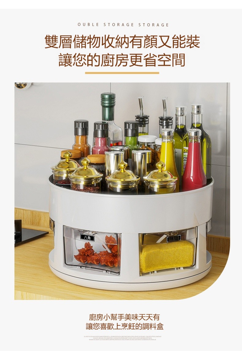 【雙層旋轉調味架】 ✅雙層收納✅360°順滑旋轉✅密封防潮 +防高瓶設計,小角落變身收納魔術區!✨
