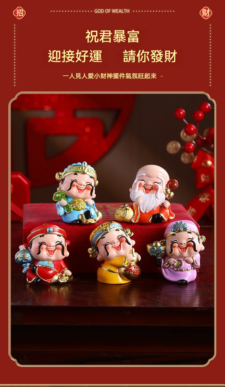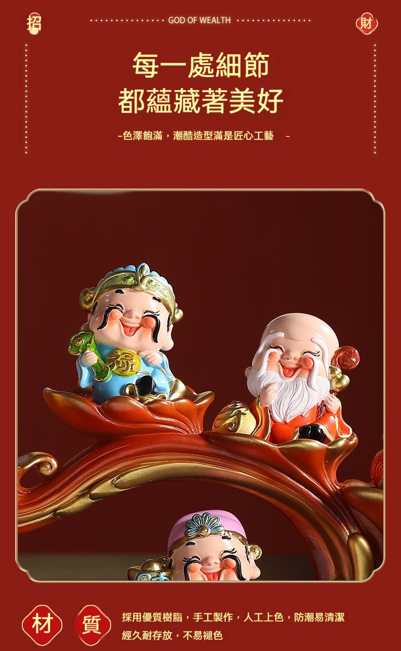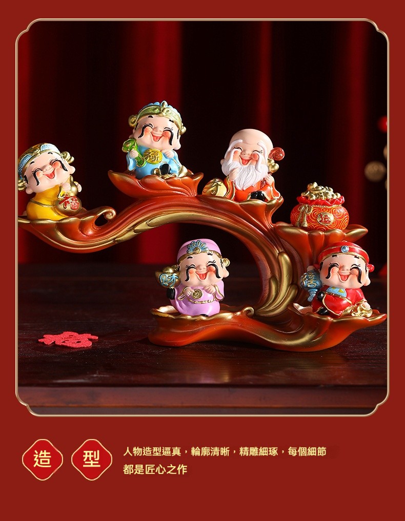 【五福財神爺擺件】笑臉招財・樹脂精雕・開業喬遷禮品|為家宅店鋪引聚財氣,手工上色超精緻,讓你人見人愛、錢也愛你!✨