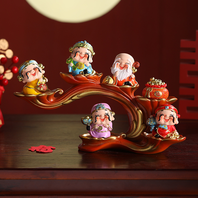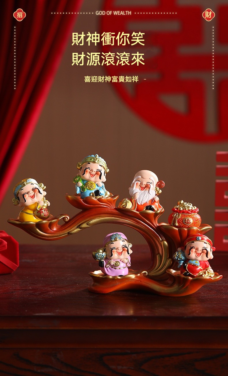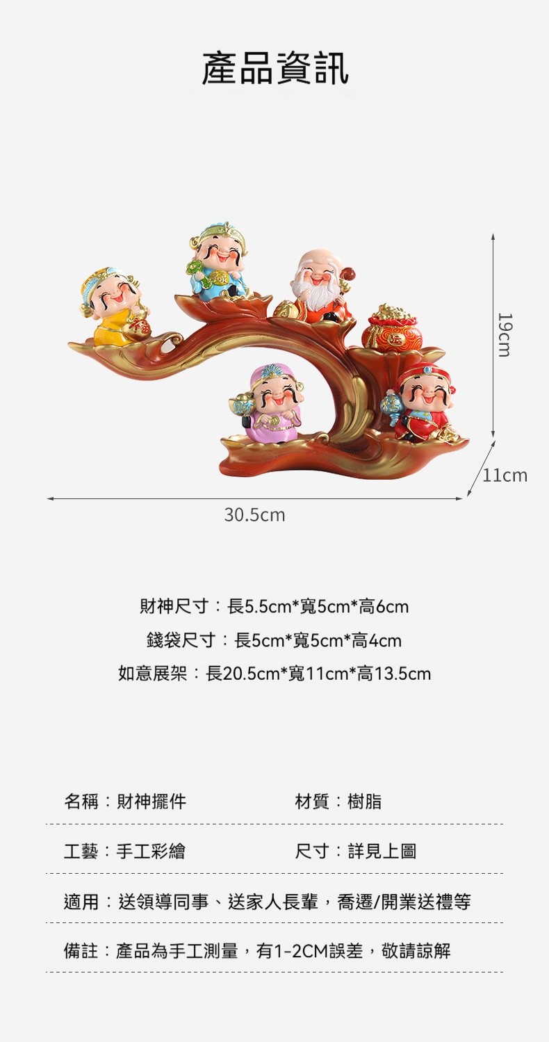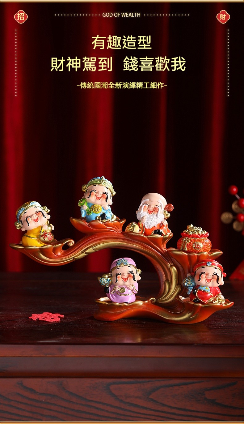 【五福財神爺擺件】笑臉招財・樹脂精雕・開業喬遷禮品|為家宅店鋪引聚財氣,手工上色超精緻,讓你人見人愛、錢也愛你!✨