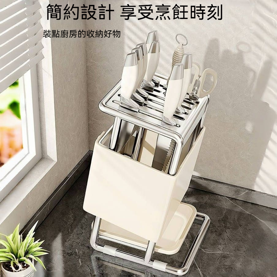 【日式廚房旋轉刀架】透氣瀝水、安全防割完美整合!不鏽鋼一體成型、磁吸分區收納、可移膠貼底座,重新定義刀具收納的安全美學✨